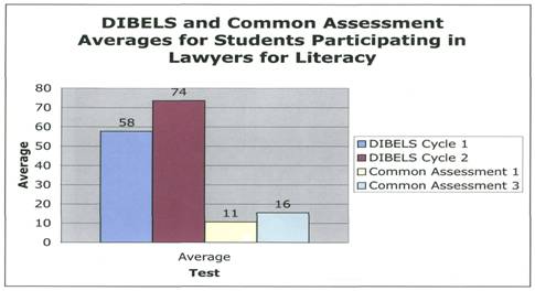 The Dynamic Indicators of Basic Early Literacy Skills (DIBELS) are a set of standardized, individually administered measures of early literacy development. The Common Assessment is a separate test prepared by the school. These tests are used to determine which children may need additional help in order to pass the FCAT. The first and third columns indicates the average scores on DIBELS and the Common Assessment before the Lawyers for Literacy program. The second and fourth columns show the average scores of the Lawyers for Literacy children toward the conclusion of the program, indicating a significant improvement in their reading abilities. In fact, every child in the Lawyers for Literacy program last year passed the FCAT. More than twenty lawyers and judges participated in this year’s program, which concluded on February 21, 2007, just in time for the start of the FCAT on February 26, 2007. The volunteers worked one-on-one with students for an hour each Wednesday over the course of twelve weeks. For some, including local attorney Jackson Bowman, the experience has had a profound impact. Bowman was so inspired by the program that he would like to contribute to his child’s future education, and he is looking forward to returning as a volunteer for the next program, which will run from November 28, 2007 through March 5, 2008. In addition to volunteer participation in the reading program, Lawyers for Literacy encourages donations, which are used to purchase books for children in the program to encourage them to read at home and share their knowledge with their families and friends. For more information on volunteer and sponsorship opportunities for Lawyers for Literacy.